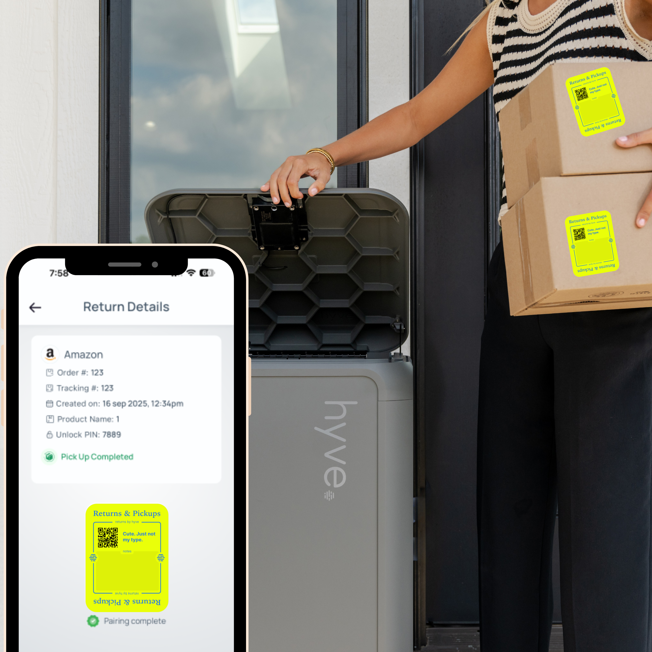 hyve's Smart Return labels pair with your returns' order and tracking numbers to ensure your driver can correctly identify the return upon pickup.